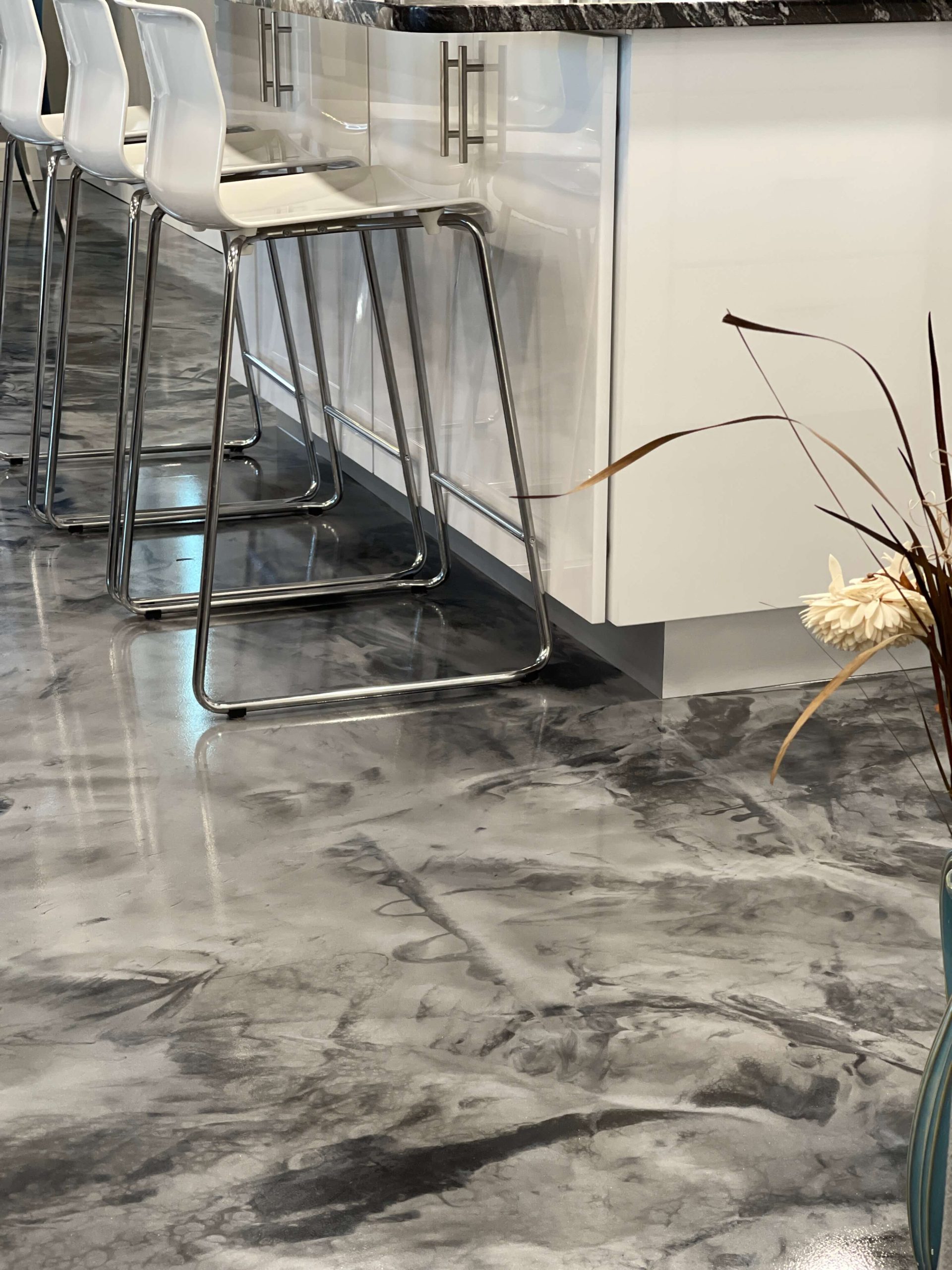 Metallic Epoxy floors are a seamless, high-end look often mistaken for unique one-of-a-kind marble. Epoxy floors are cost-effective and easy to install. Our Epoxy Floor Kits are designed to go right over your existing interior concrete floors.
