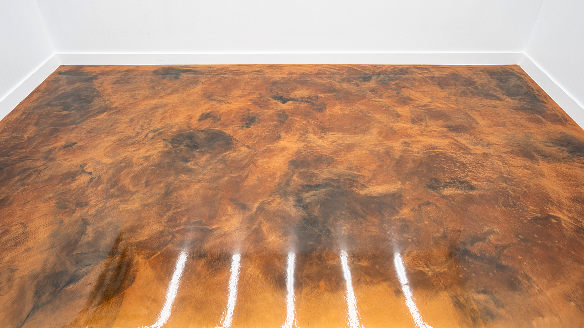 This floor has a Brass Base with Black Highlights. The Highlights are applied in puddles and then blended with a roller.