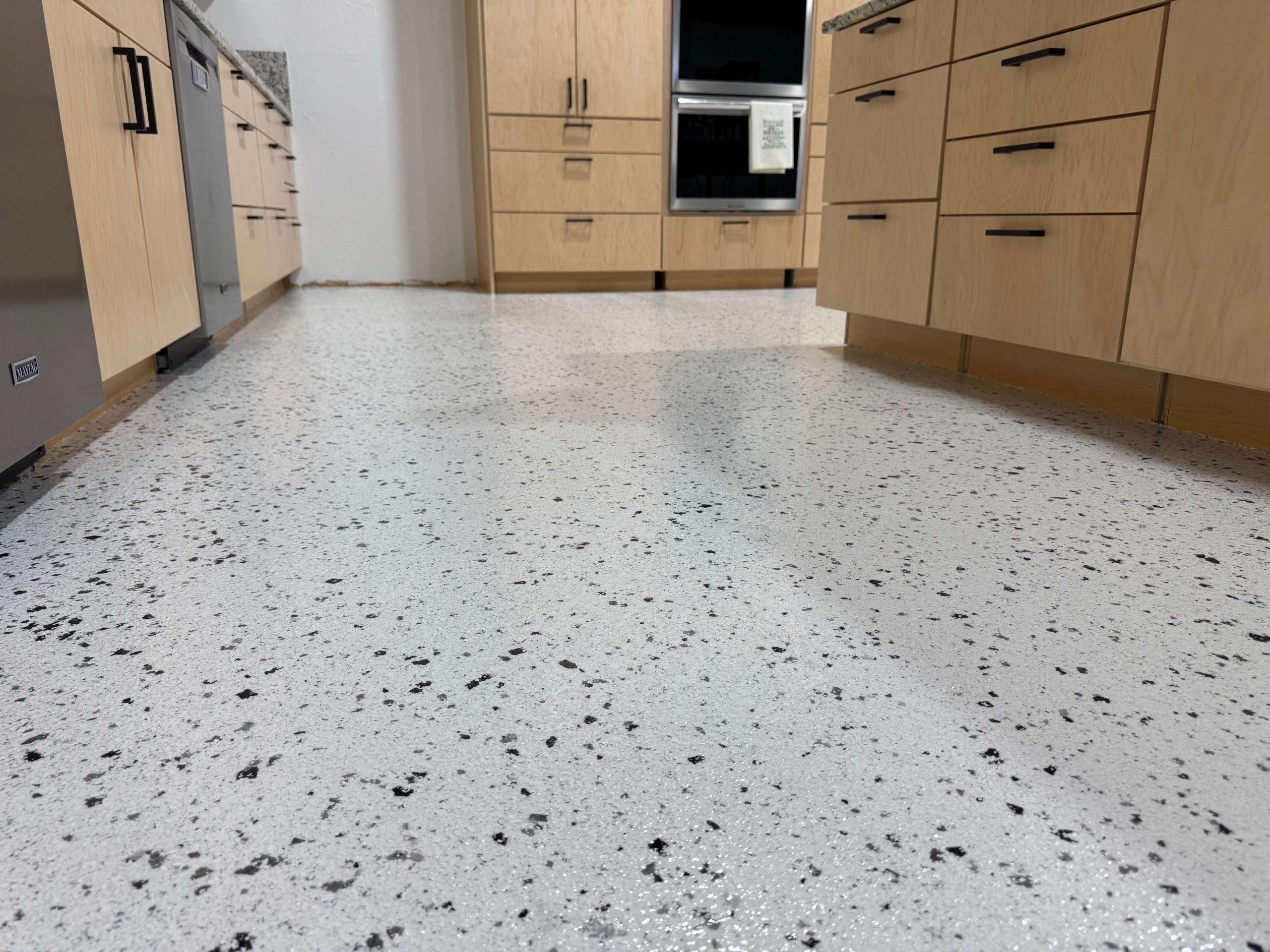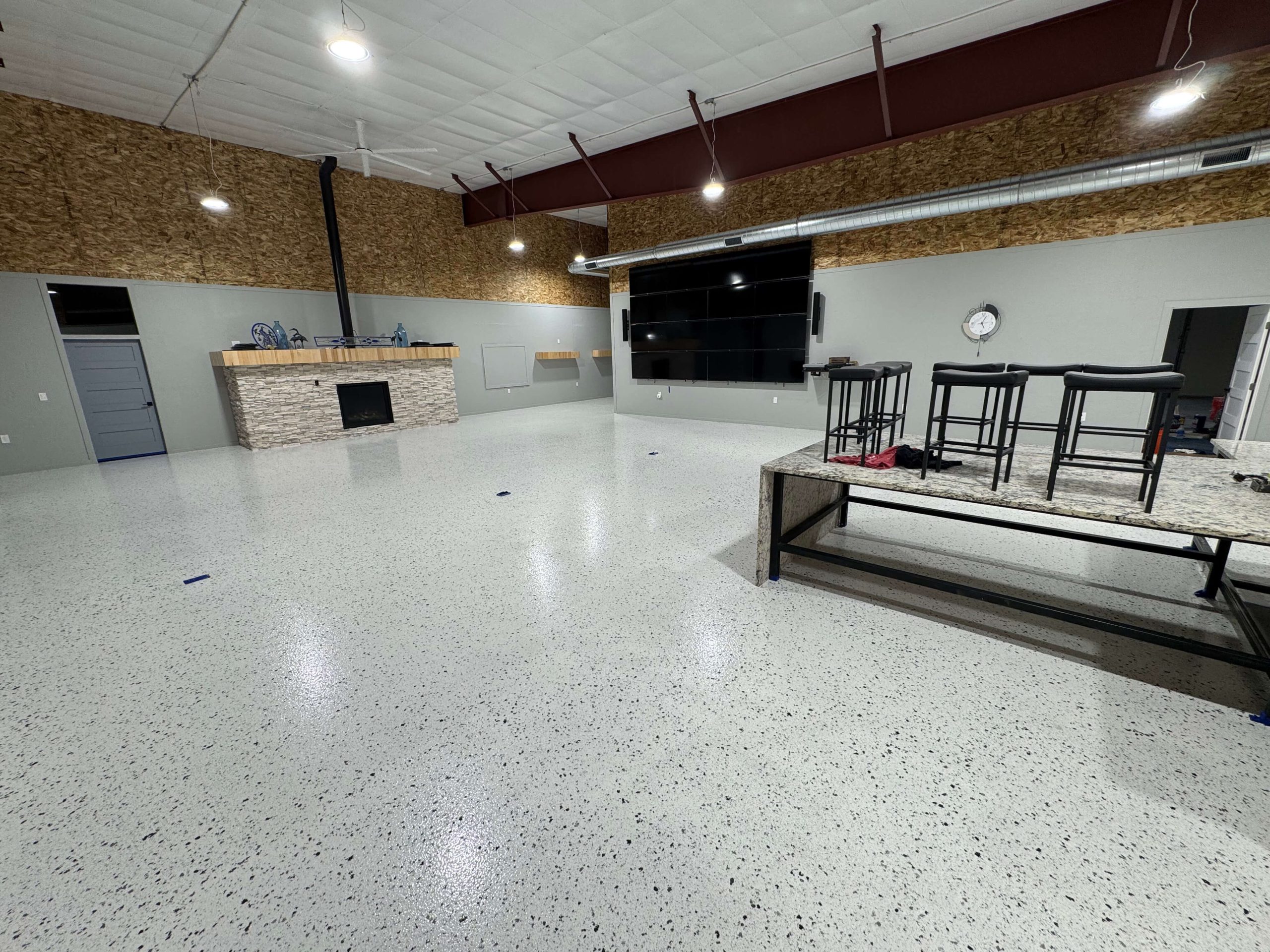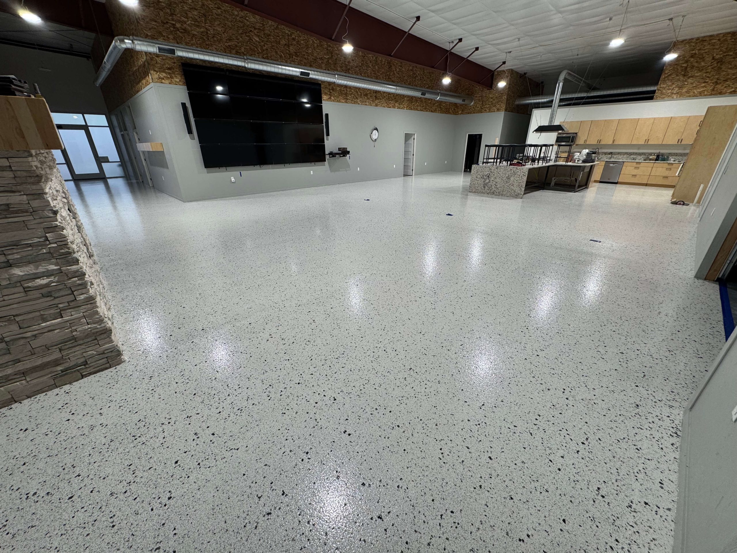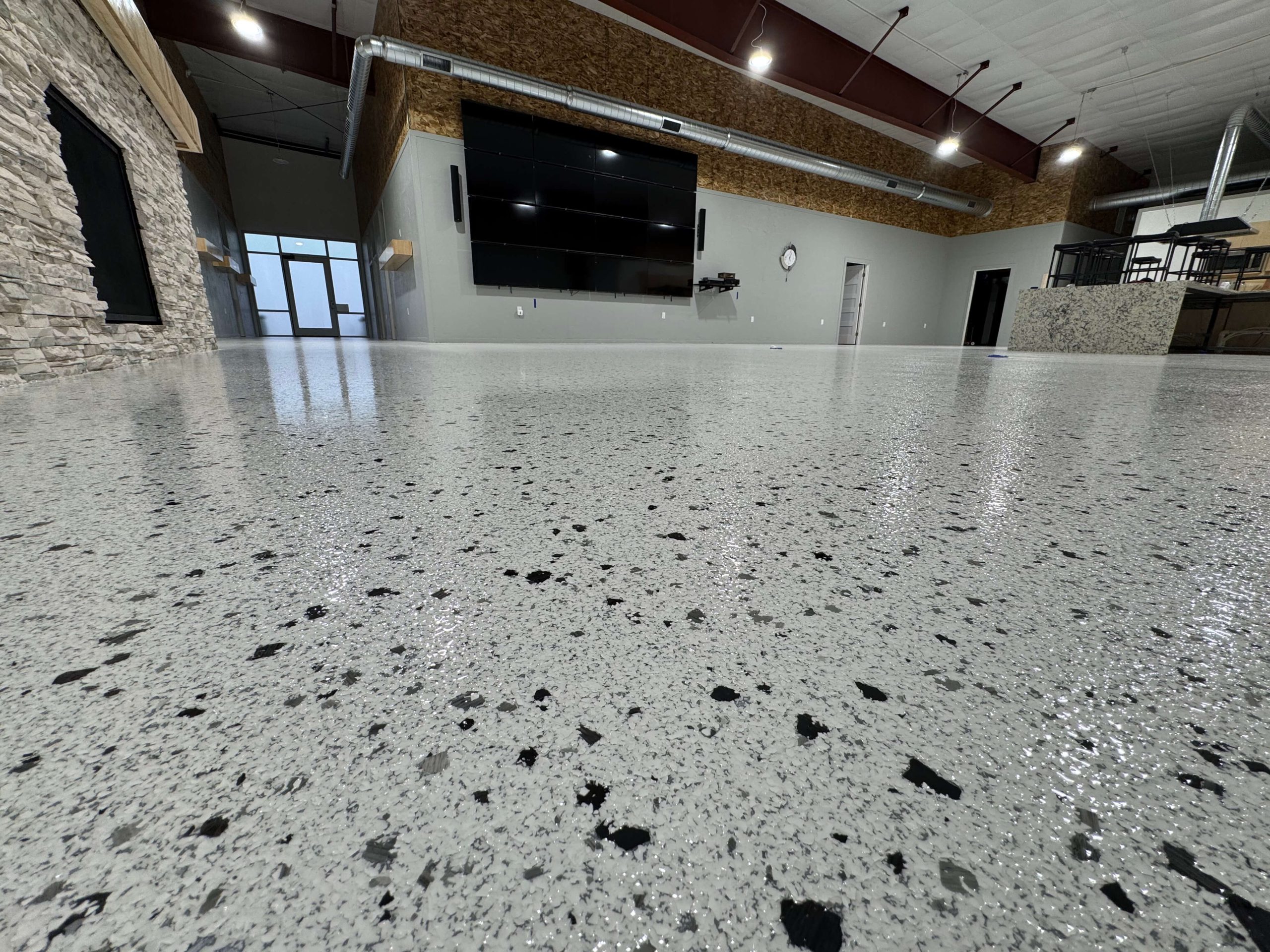 These floors give an extremely clean look mimicking Terrazzo. Epoxy floors are cost-effective and easy to install. Our Leggari Flake Floor Kits are designed to go right over your existing interior concrete floors. They’re easy to install and easy to maintain. Add our famous Urethane Top Coat for even more chemical resistance and durability.